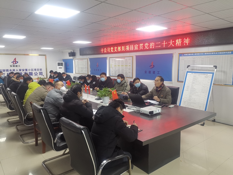 根據公司黨委統一部署,1月2日上午,十公司黨支部書記吳明寬前往水岸人家項目開展“讓黨的二十大精神在施工一線落地生根”主題宣講活動。十公司水岸人家項目、長豐縣北城醫院一標段項目、雙墩中心小學項目全體管理人員及項目部分工友參加此次宣講活動。