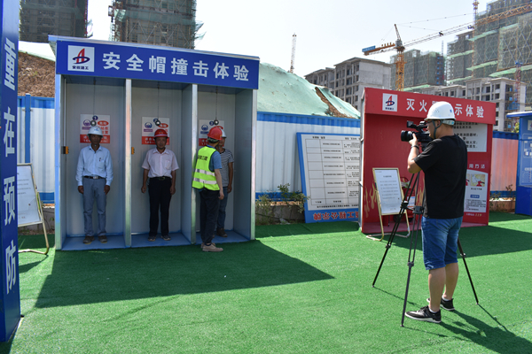范太忠?guī)ьI(lǐng)記者參觀目現(xiàn)場安全體驗(yàn)區(qū),記者親自體驗(yàn)安全帽撞擊實(shí)驗(yàn)活動,實(shí)驗(yàn)測試結(jié)果讓記者大吃一驚,“一百次勸說不如一次親身體驗(yàn),如果不戴安全帽,這樣直接撞擊在人的頭部可以說是致命。”記者說道。讓員工親自體驗(yàn),就會讓他體驗(yàn)到佩戴安全帽的重要意義。除了安全帽撞擊實(shí)驗(yàn),現(xiàn)場還設(shè)置了綜合用電體驗(yàn)、安全帶使用體驗(yàn)、VR場館體驗(yàn)等項(xiàng)目。這種“場景體驗(yàn)式”的安全教育體驗(yàn)方式突破了傳統(tǒng)課堂“言傳身教”的安全教育模式,讓職工身臨其境,更好地培養(yǎng)工人安全生產(chǎn)意識,做到安全生產(chǎn)警鐘長鳴。