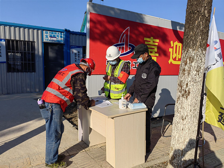 前期圍墻未完全封閉,給防疫帶來一定的難度,為防止工人未登記入場私自出入,項目經理崔沖雙管齊下,帶領項目部制定防疫方案。一是采取項目管理人員現場巡查制度,實行網格化管理。二是制定安全帽每日進場貼牌,對入口登記過的工人安全帽上貼上安全牌,便于巡查人員識別當日現場人員是否按要求進場,此方式得到了業主和監理單位充分認可。