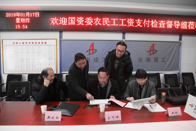 元月17日,由省國資委監事會主席鄭成雨帶隊、省國資委分配處副處長王可坤等人組成的農民工工資支付檢查督導組,到我公司合肥市青年少年實踐基地工程項目部,就勞務管理及農民工工資支付及勞務管理進行檢查督導。集團公司人力資源部部長朱金蓉、信訪保衛部部長駱新農陪同檢查,公司總經理何洪春等陪同檢查。