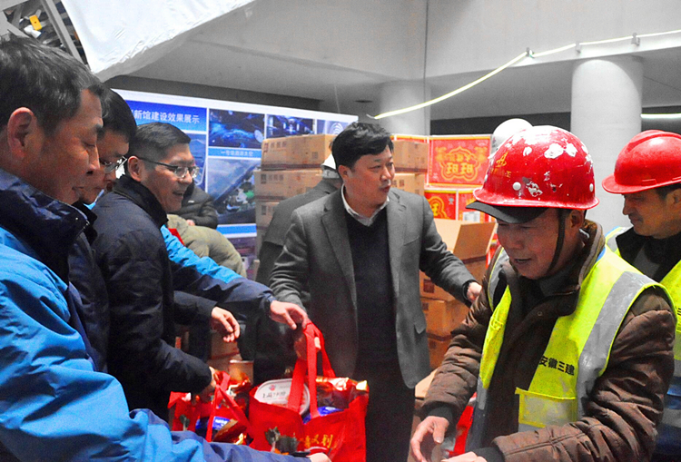 2月2日上午,在新春佳節(jié)即將來臨之際,公司總經(jīng)理、黨委副書記何洪春、紀委書記、工會主席李家保、副總經(jīng)理李建成組成慰問工作組,深入安徽創(chuàng)新館項目部一線,給依然奮戰(zhàn)在項目一線的廣大員工和工人送去了新春祝福以及春節(jié)慰問品。
