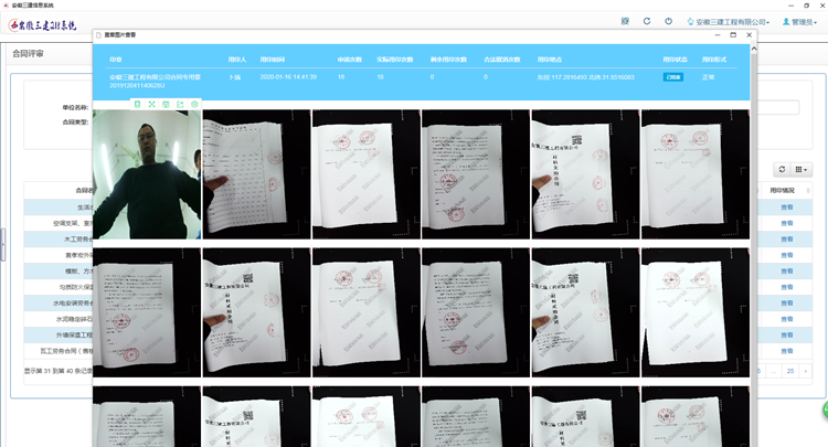 2019年公司結(jié)合實(shí)際在218系統(tǒng)中,成功將公司信息管理系統(tǒng)合同評(píng)審流程和具有指紋加鎖功能的物聯(lián)網(wǎng)印章終端進(jìn)行了集成,使得各項(xiàng)合同只有通過系統(tǒng)評(píng)審后,方可打印合同文本,授權(quán)印章管理員指紋解鎖印章管理終端設(shè)備,進(jìn)行用印。更為嚴(yán)密的是,系統(tǒng)將自動(dòng)拍照記錄用印人、用印文件等用印全過程并備案,有效防范了印章私蓋、漏蓋、外帶、盜用等風(fēng)險(xiǎn)。