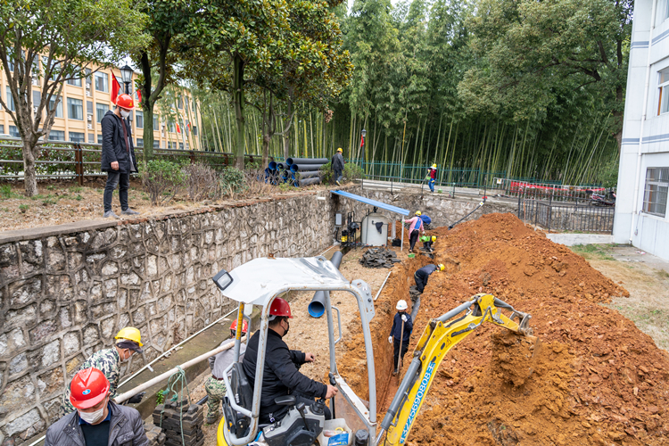 半湯應急工程現場工人戴口罩施工