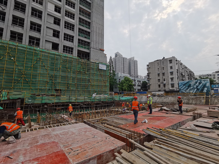 五一期間安裝公司宿州靈璧醫院、北城醫院和市二院等重點項目從一線工人到項目負責人員主動放棄休假,堅守崗位、加班加點、奮戰在一線,用辛勤汗水慶祝自己的節日。圖為5月1日,氣溫高達35℃,為確保項目按質按量完成,項目管理人員對靈璧醫院地下室頂板預埋前做現場檢查和驗收。