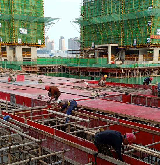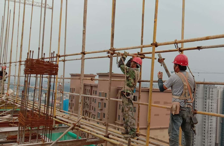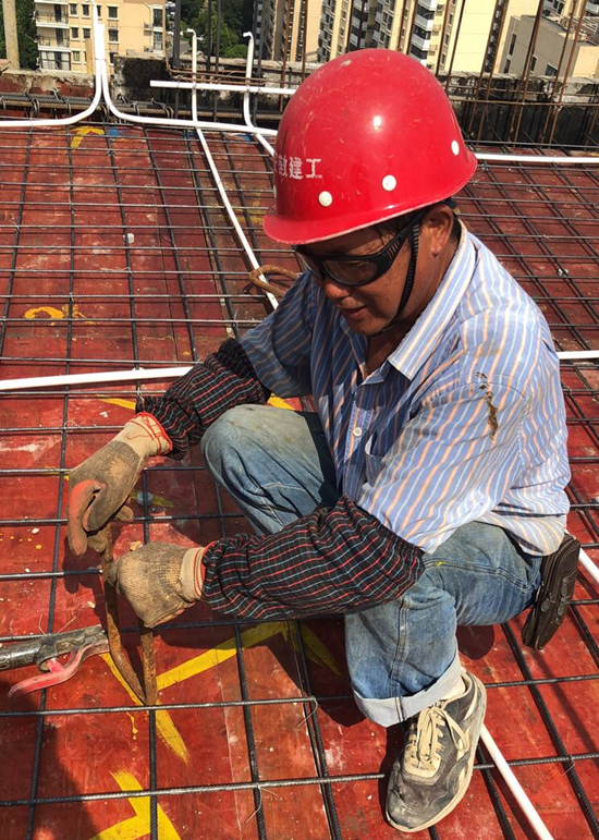 華力勞務(wù)公司中海新站區(qū)27#售樓部項目現(xiàn)場,鋼筋師傅正在烈日下綁扎鋼筋