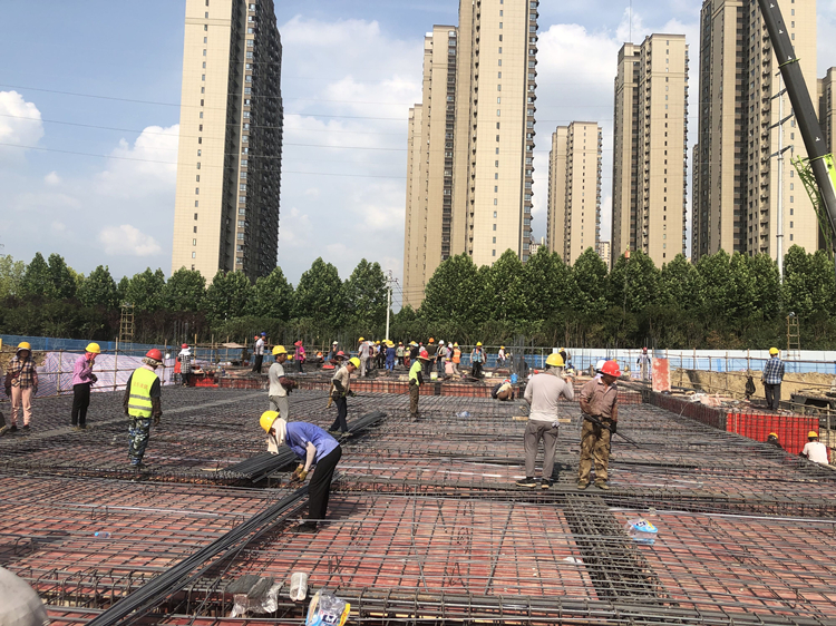 合肥市中心圖書館項目是合肥市重點工程,為保證施工進(jìn)度,項目部不僅備好涼白開、礦泉水、綠豆湯、還有仁丹等解暑物品,錯開上午10點至下午3點白天高溫時間段進(jìn)行施工,還將農(nóng)民工學(xué)校教室及會議室空調(diào)全天開啟,以備工人休息使用。圖中是在華燈初上的天鵝湖畔,廣大工人師傅正在進(jìn)行地庫鋼筋綁扎及外架搭設(shè)工作。