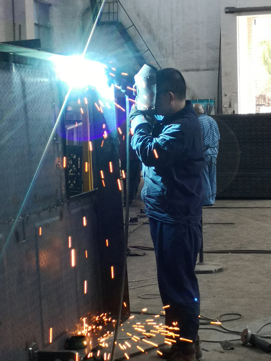 連日來,輕鋼龍骨公司采取了多項措施戰(zhàn)高溫、保生產(chǎn)。一方面為車間班組發(fā)放了毛巾、風(fēng)油精、人丹等防暑降溫物品和藥品;另一方面為各車間辦公室安裝了空調(diào)設(shè)施,供車間師傅乘涼、休息使用;此外,龍骨公司還加強(qiáng)車間班組人員用電、機(jī)械設(shè)備操作等安全教育,確保做到生產(chǎn)、人員安全,為廣大職工營造安全生產(chǎn)環(huán)境。圖為輕鋼龍骨公司二車間師傅高溫下穿著長袖工作服焊接人貨電梯產(chǎn)品。